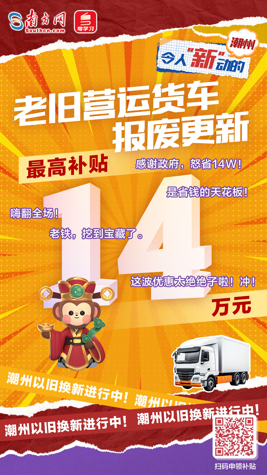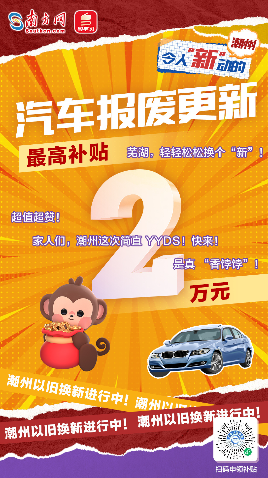 记者从潮州市发改局了解到,潮州新一轮“两新”(大限度蛊惑更新和消耗品以旧换新)行径已运行。潮州这波“换新”不仅涵盖家电、汽车、电动车等传统消耗品,还遮蔽旧房装修和厨卫、居家适老化矫正以及老旧营运货车报废更新,最高补贴14万。优惠多多,羁系错过!即日起至2024年12月31日,快来“换新”领补贴吧!